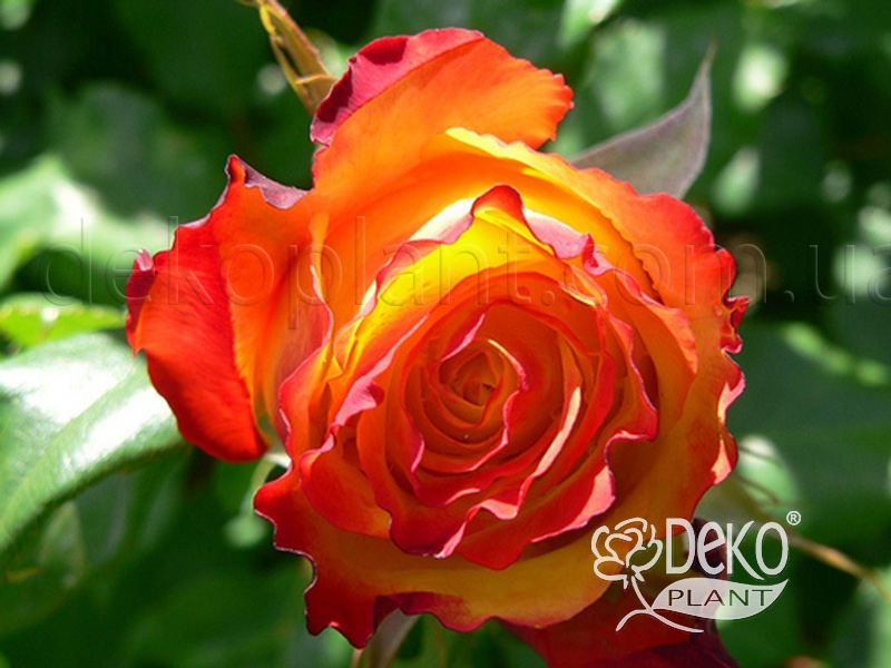 Ця чудова, двоколірна, рясно-квітуча троянда, виведена в 1971 році в Англії практично відразу стала надзвичайно популярною завдяки своєму яскравому забарвленні і невибагливості у догляду. Назва цього сорту (Червоне Золото) дуже точно відображає забарвлення класичної келиховидної форми махрових квіток з червоними по краях і золотистими до центру пелюстками, що створює дуже яскравий контраст. Кущ високий, густий, покритий блискучим темно-зеленим, з червонуватим відтінком листям. Сорт досить зимостійкий.