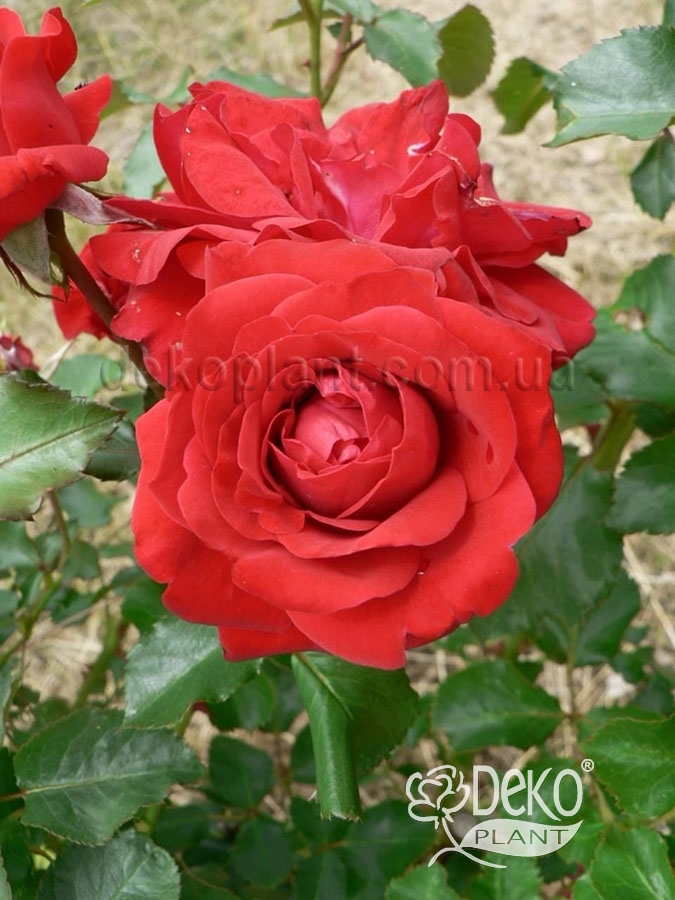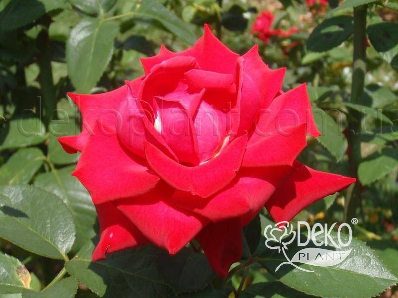 Ця розкішна троянда гідна займати центральне місце в саду. Квітки великі, густо-махрові, бокаловидні, сяюче-червоні, легко переносять спеку і майже не пошкоджуються дощем. З'являються по одному на кінцях довгих, міцних квітконосів з загострених, червонуватих бутонів, чудово підходять для зрізання. Кущ прямий, добре розгалужений, досить швидко наростає, охайний. Молоде листя червонувато-коричневе, з часом набуває класичний темно-зелений колір, відмінно доповнюючи квітки. Сорт характеризується рясним, тривалим, повторним цвітінням, хорошою стійкістю до захворювань і лютих морозів.