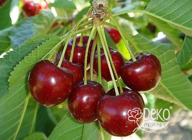 Плоды крупные, весом до 10 г, блестящие, одинаковой формы, темно-красные, почти черные. Имеет розовую мякоть, сочную, сладкую немного с кислинкой.
