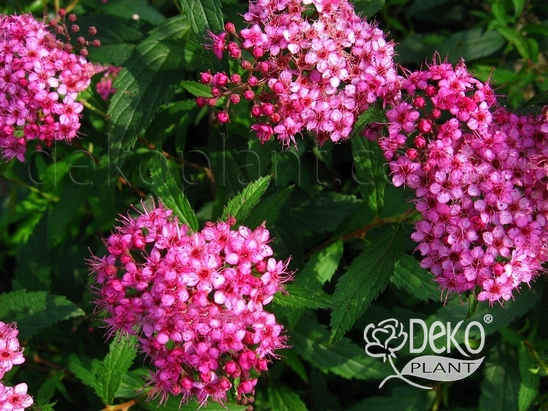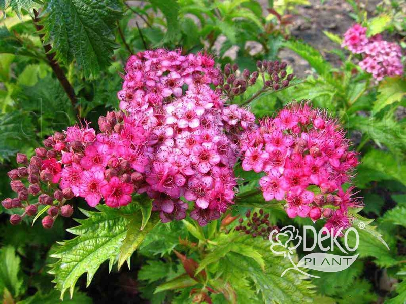 Спирея Бумальда - небольшой кустарник, компактный, шаровидной формы, побеги вертикальные. Высота 0,6-0,8 м, ширина до 1 м. Цветки розово-карминные, длительный период цветения, до 100 дней, с конца июня до сентября; цветки в щитковидные соцветия до 15 см шириной. Листья при распускании часто красноватые, свежее-зеленые, осенью привлекательную окраску от оранжевого до бронзово-красного. Зимостойка, не требовательна растение, подходит для городских условий.